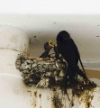 出于对燕子的好奇,我决定经常去光顾它,以了觉我儿时对燕子的心愿;第二天4月10日,天阴阴的,纷着小雨,扛着相机就来到了这屋檐下。由于天下雨、光线不好,屋檐下的光就更差了,我将感光度达到800、光圈最大,快门速度还是提不高,拍得效果不理想,现选了两张。从中可知小燕子已经出壳了,它们的父母在为它们保暖、喂食、清理。